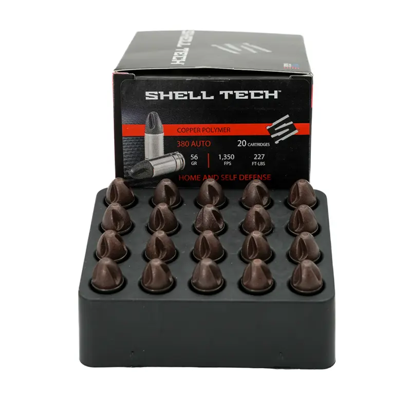 Experience the unmatched performance of Shell Tech’s 380 ACP ammo, meticulously designed for those demanding superior self-defense capabilities. Our revolutionary poly/copper fluted projectiles, coupled with our innovative Shell Shock Technologies NAS³ casings, redefine ammunition technology standards. Perfect for both experienced marksmen and newcomers to firearm ownership, Shell Tech’s 380 ACP ammo delivers the dependability and precision essential in high-stakes situations. Enhance your shooting experience with our advanced, lead-free 380 ACP rounds, featuring fluted copper polymer projectiles for improved accuracy and damage. Dive into our lineup of elite ammunition today and discover why an increasing number of shooters are turning to Shell Tech for their self-defense requirements.